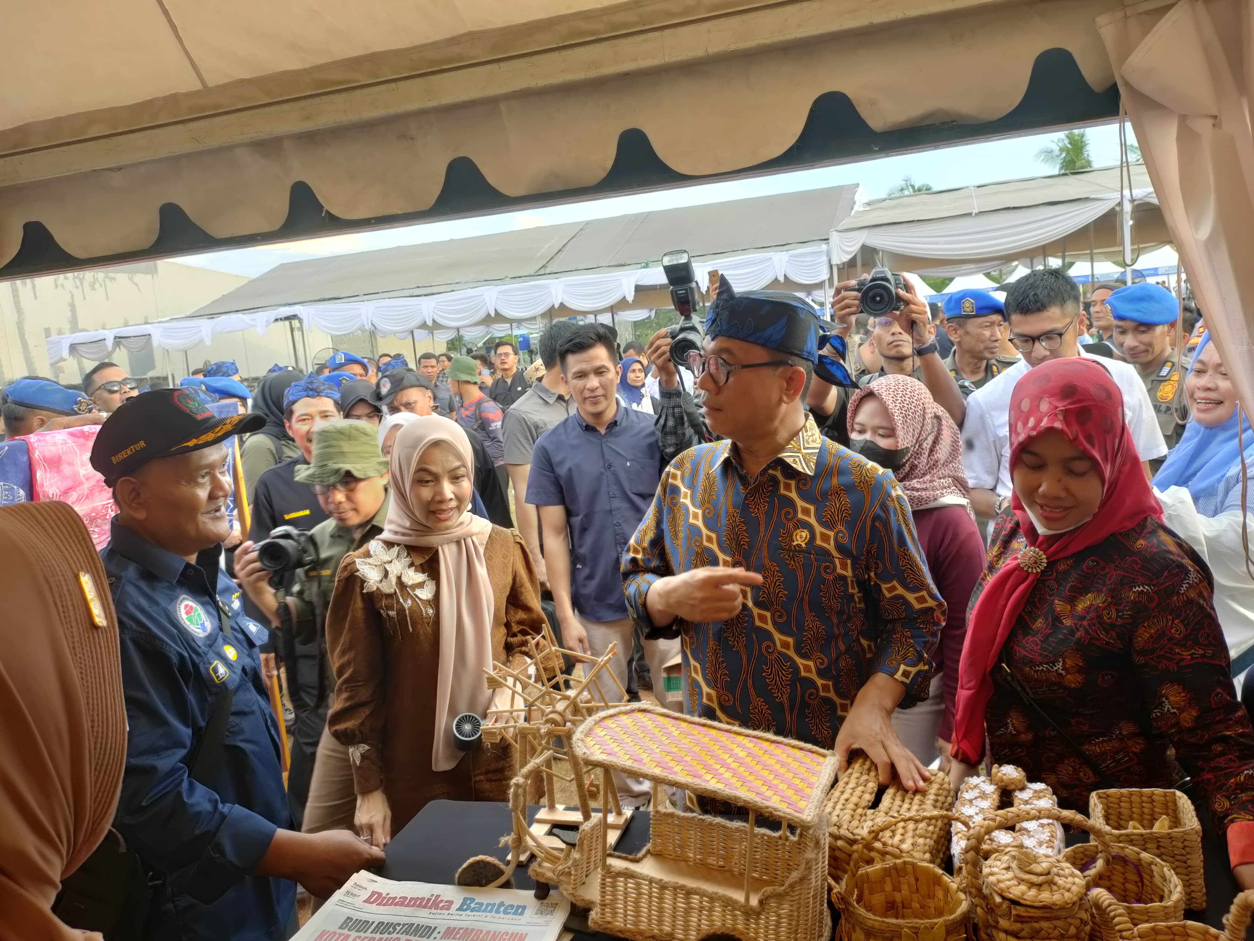 Kunjungan ke stand pameran, Mendes PDT didampingi Wakil Menteri Desa PDT Ariza Patria, Wakil Menteri Lingkungan Hidup Diaz Hendropiyono, Wakapolda Banten Brigjen Pol Hengki, Bupati Serang Ratu Rachmatu Zakiyah, Kapolres Serang AKBP Condro Sasongko dan perwakilan dari dinas terkait di Kabupaten Serang.