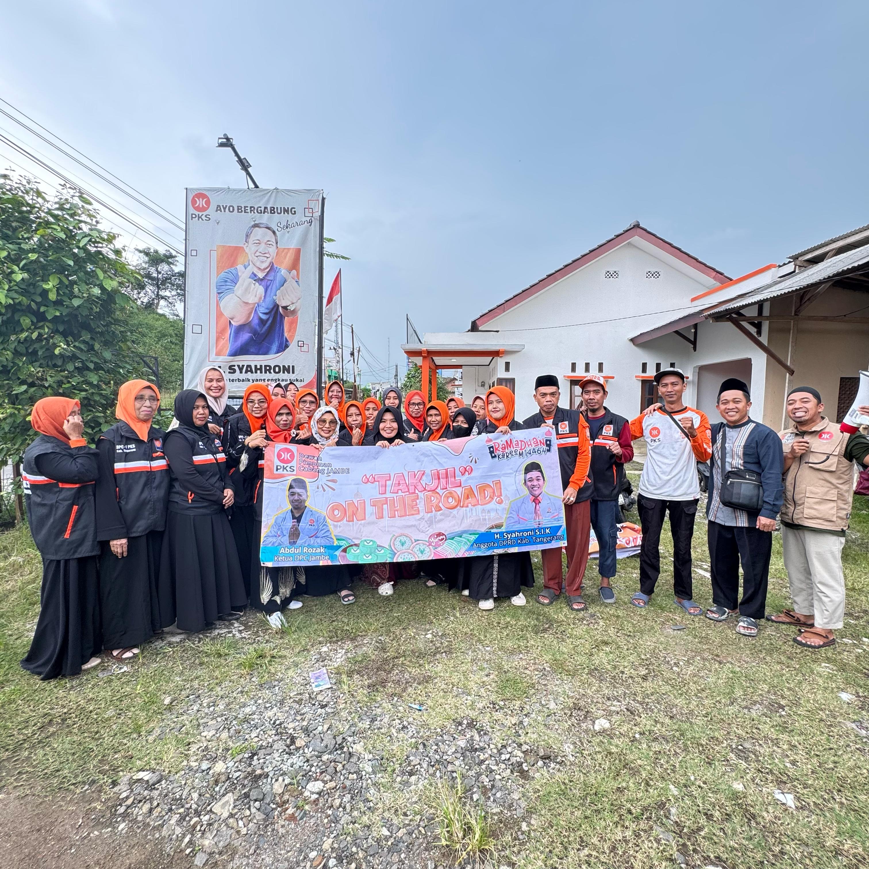 Menyambut bulan suci Ramadan, DPC PKS Jambe menggelar kegiatan Takjil On The Road sebagai bentuk kepedulian terhadap masyarakat yang masih dalam perjalanan saat waktu berbuka tiba. Kegiatan itu berlangsung di depan Kantor DPC PKS Jambe dan Rumah Aspirasi H. Syahroni di Jalan Raya Jambe, Kabupaten Tangerang. Kemarin.