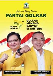 Ketua DPD Partai Golkar DKI Jakarta Ahmed Zaki Iskandar adakan tasyakuran dalam rangka HUT Golkar ke 59 dan Maulid Nabi Muhammad SAW. Acara yang dihadiri ratusan Kader Partai Golkar dari seluruh wilayah DKI Jakarta di halaman kantor DPD Partai Golkar DKI Jakarta kawasan Menteng tepatnya Jl. Pegangsaan Barat No 04 RW 5 Menteng Jakarta Pusat, Jum’at malam (20/10/2023).